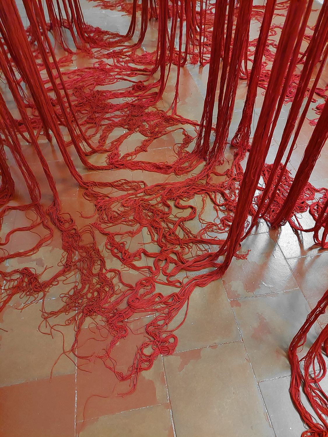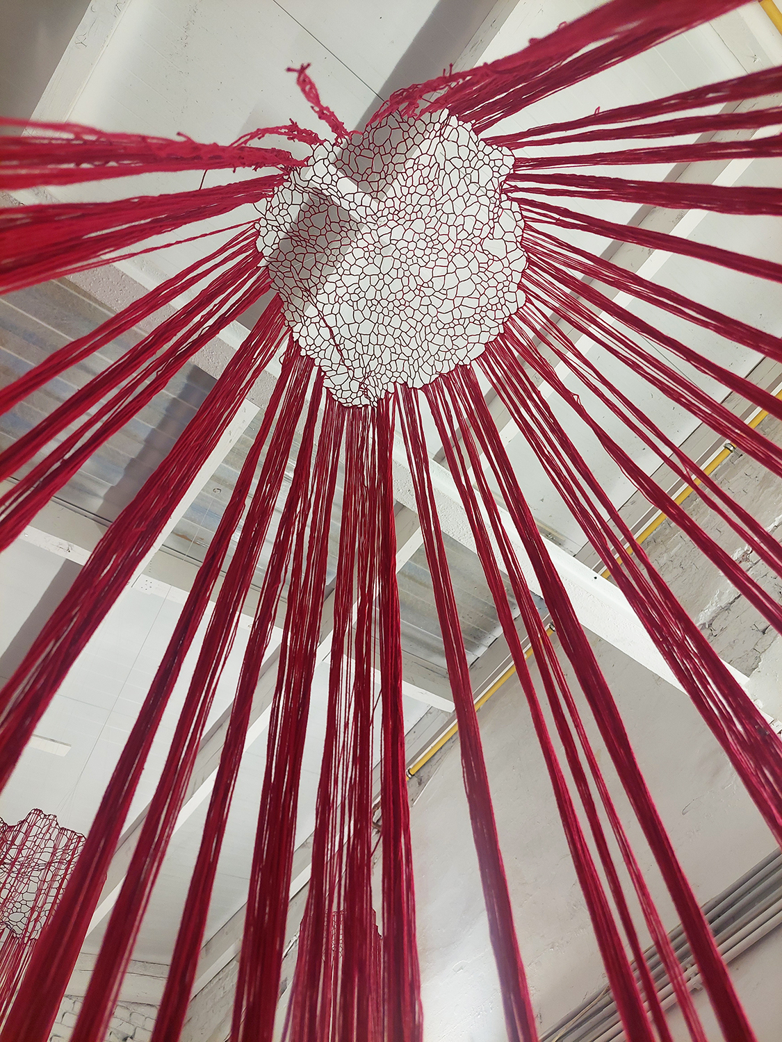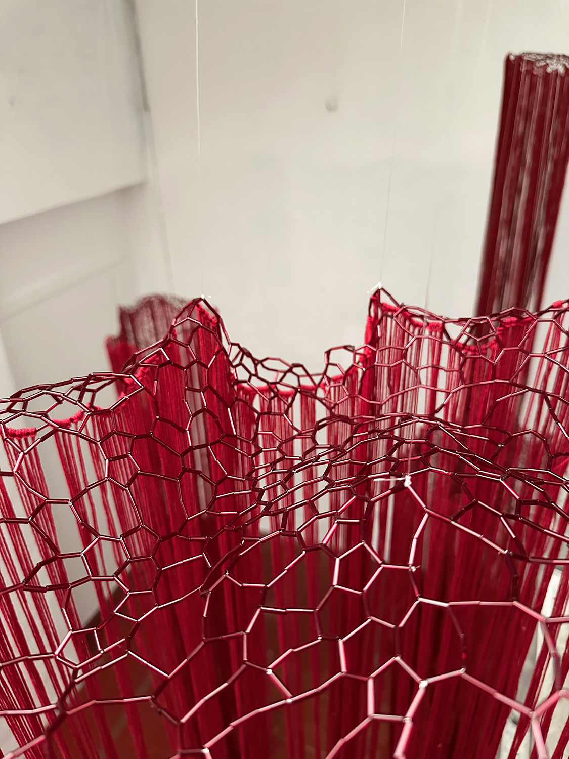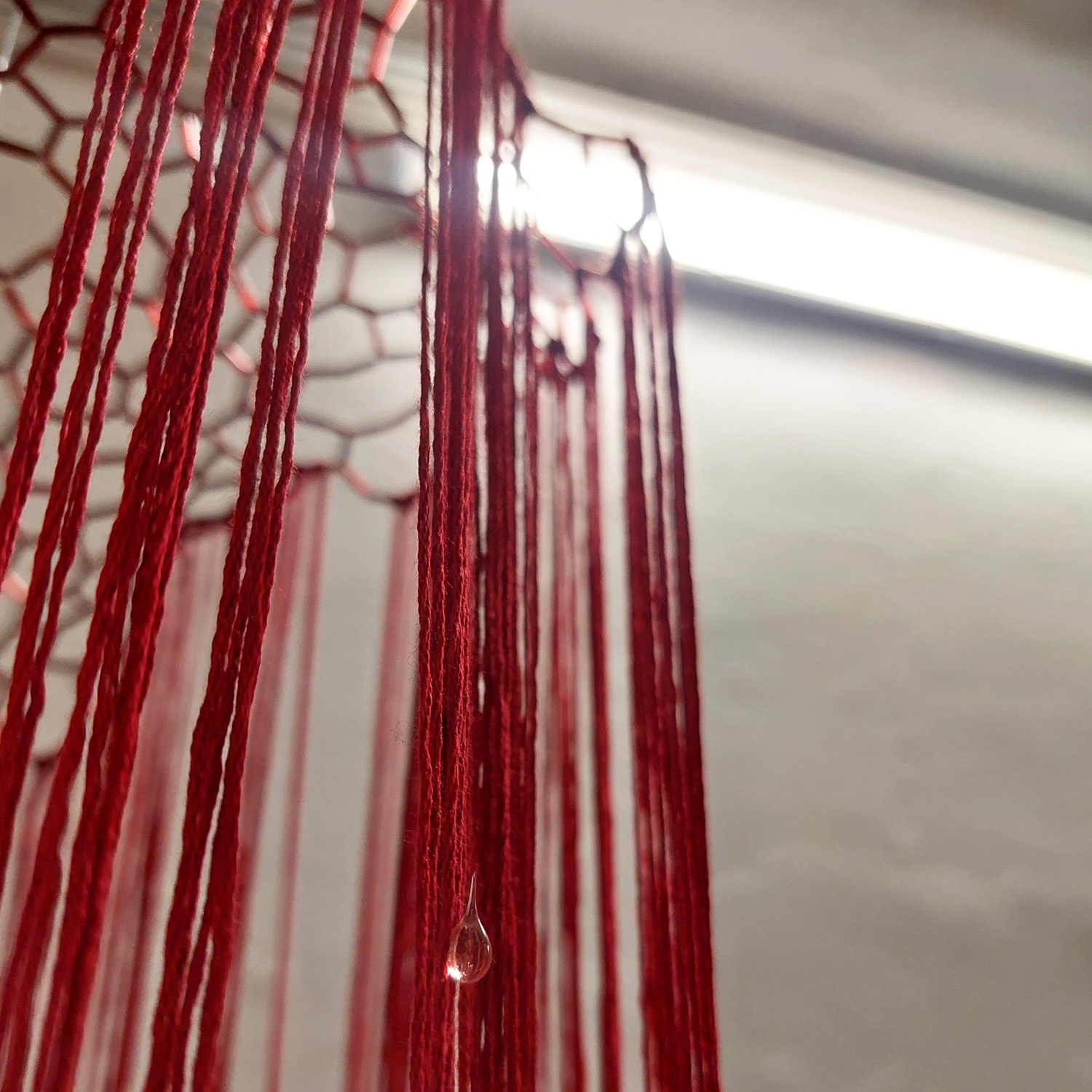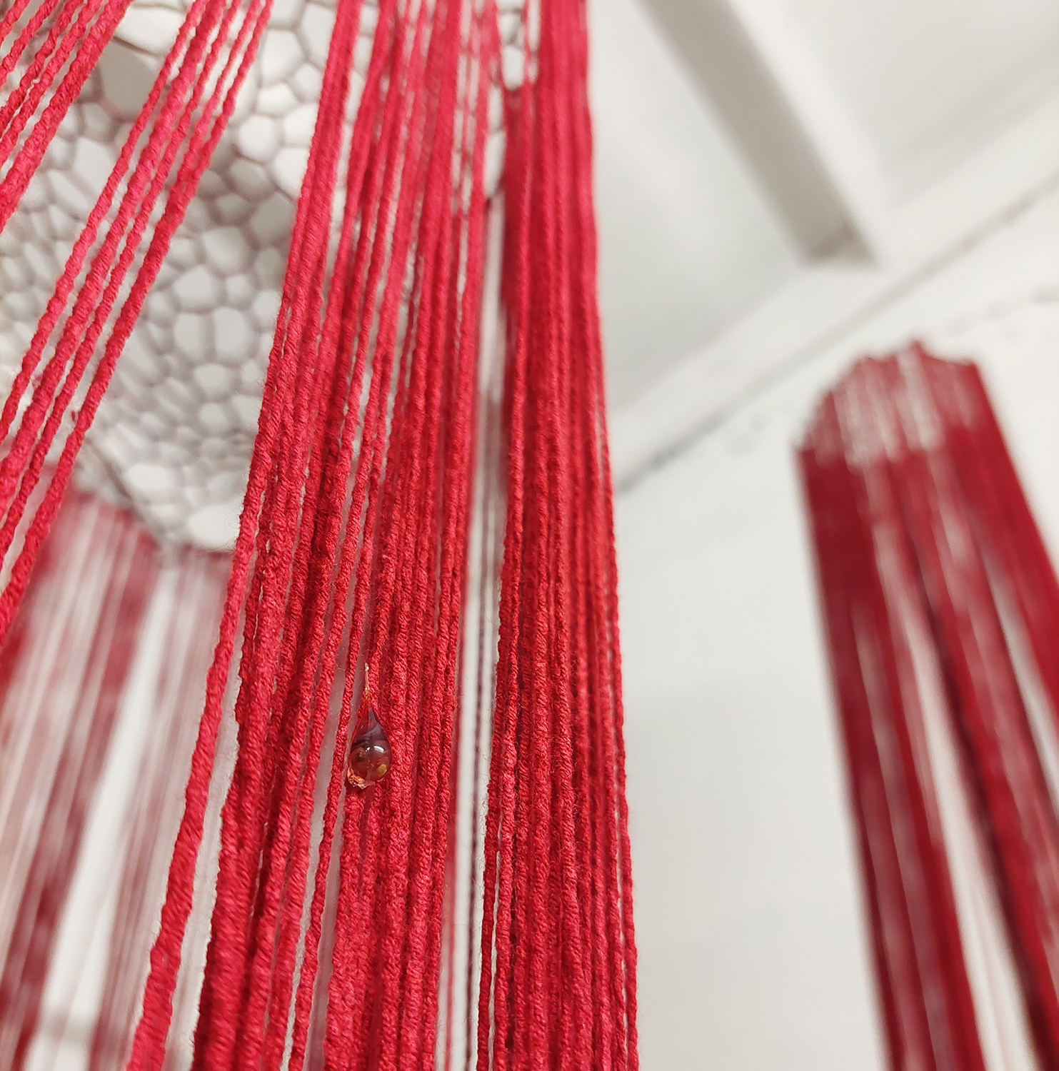 Et m'y voilà tranquille au fond de l'abîmePerles de verre, metal, fil de coton400 x 400 x 500 cm, 2023